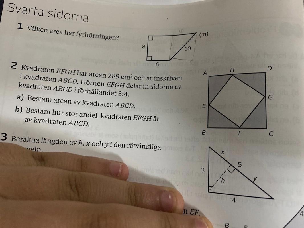 Räkna först ut hur långa sidorna är i kvadraten efgh.