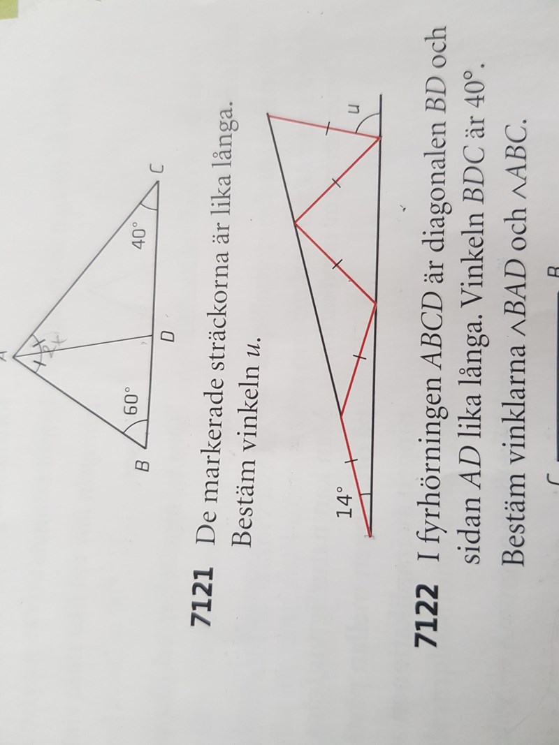 Du får jobba dig igenom trianglarna nerifrån och uppåt för att få fram vinkeln u