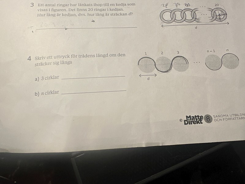 Använd diameter d och behåll Pi så uttrycket för 3 cirklar blir: