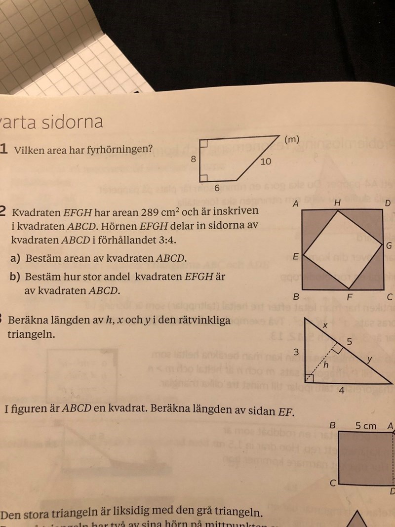 1. Vi vet att den vita kvadraten EFGH har arean 289 cm2.