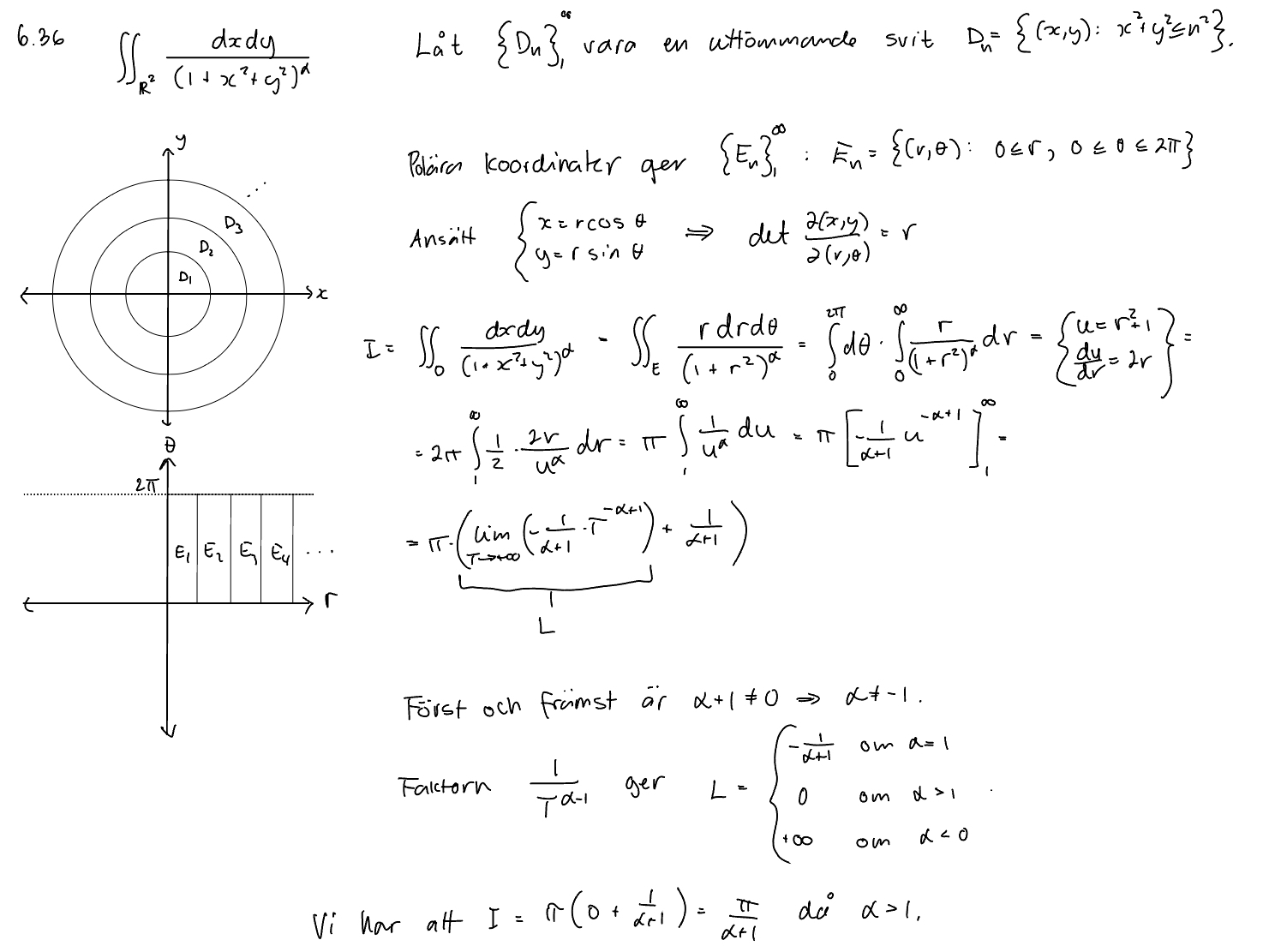 Rätt svar är det jag har skrivit, men min fråga är varför ger inte α=1 ett svar; att I = 0?