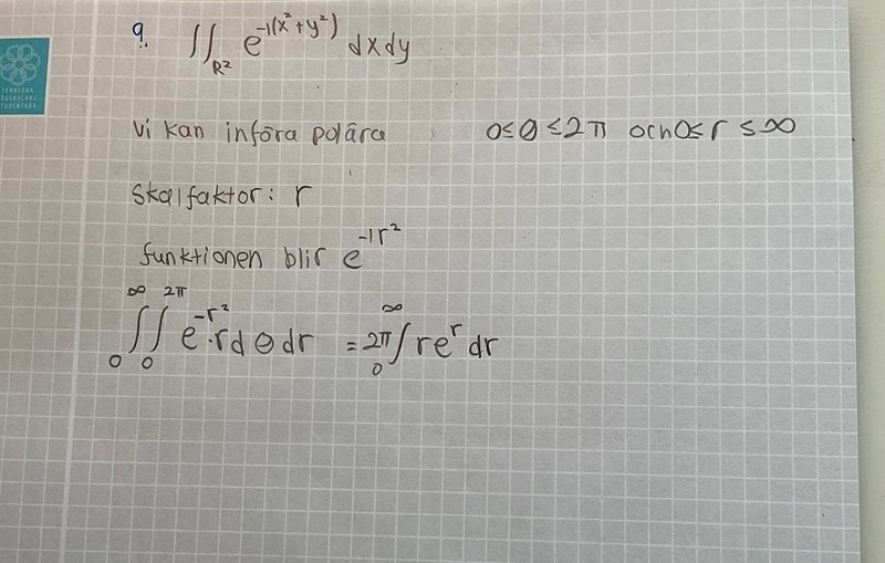 Du har skrivit att e^(-r^2) blir e^r. Hur tänker du då?