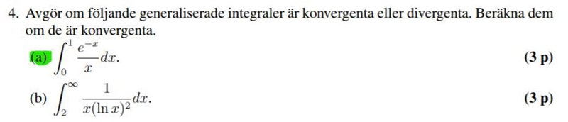 generaliserad integral är konvergent eller divergent uppg 2 (envariabelanalys)