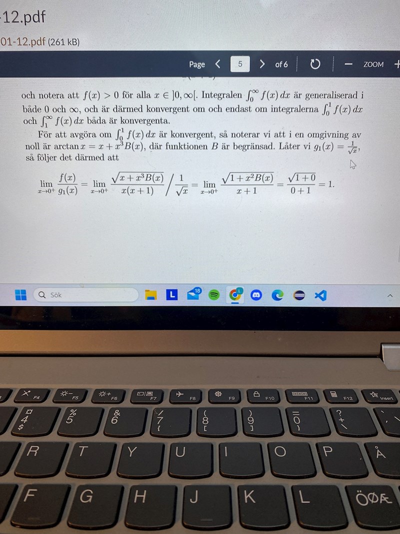 Hej, jag ska avgöra om den generaliserade integralen 0arctanxx(x+1)dx är konvergent eller divergent. Jag föstår att den är generaliserad på två sätt och att man därför måste dela upp integralen och undersöka 01f(x)dx och 1f(x)dx var för sig. I facit har de dividerat funktionen med 1xnär de undersöker hur funktionen beter när x går mot noll. De har alltså beräknat limx0x+x3B(x)x(x+1)/1x
