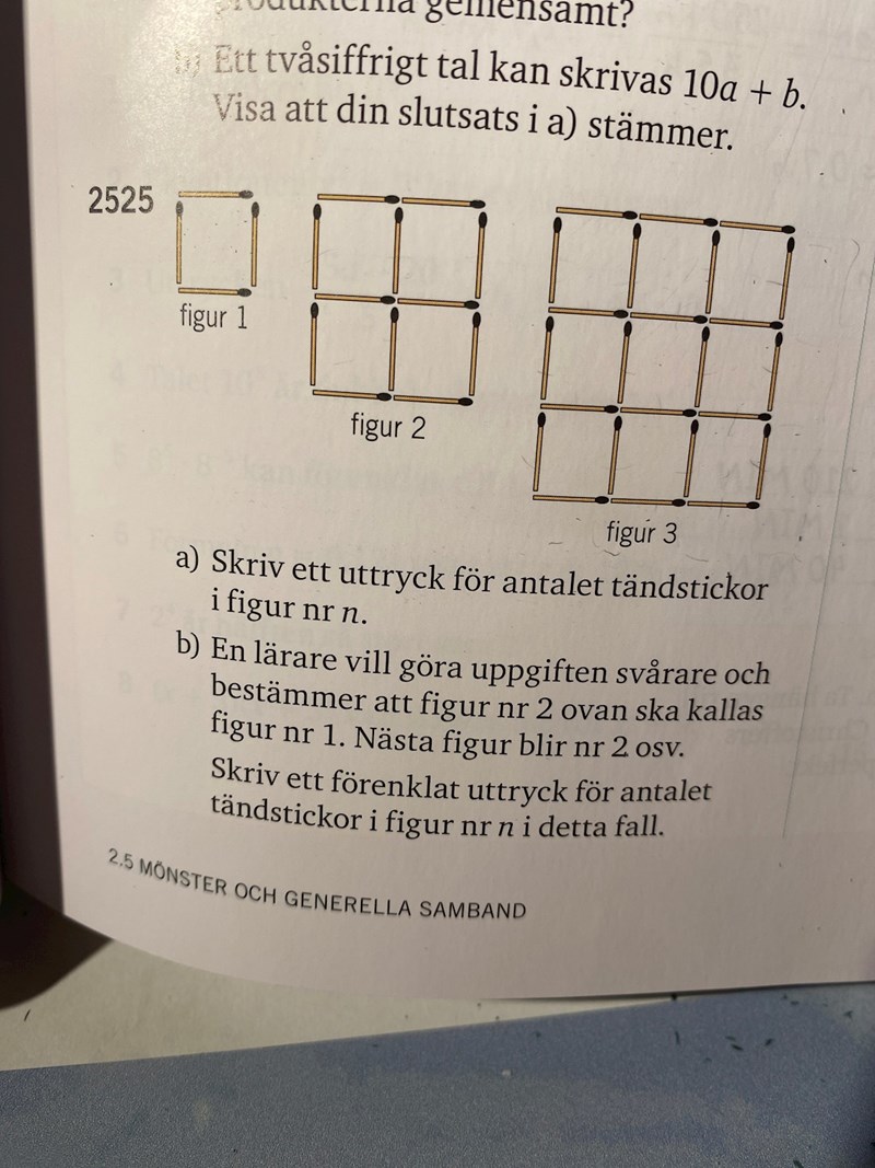 Jag började med att skriva upp en tabell med figur och antalet stickor: