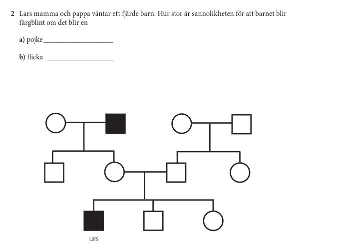 Någon som vet hur man ska lösa denna uppgiften. Har listat ut att Lars föräldrar både har ett anlag för färgblindhet.