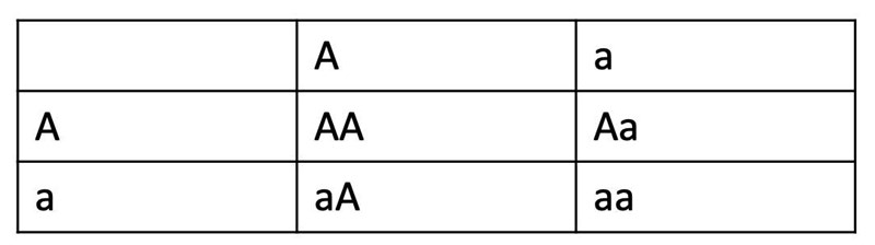Hur ser det ut? Hur stor är chansen att anlaget ärvs vidare, d.v.s. att barnet får Aa? Att barnet blir sjukt går ju inte det kräver allelkombinationen (aa).