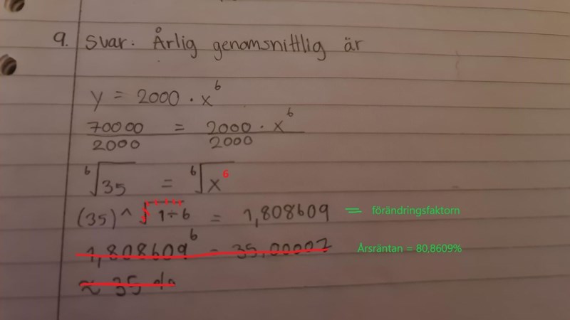 Så min räkning var att räkningen från 2000 till 70000 är 350% så tar jag det delar 6 år. 5.8 blir 58 % ökning per år ?