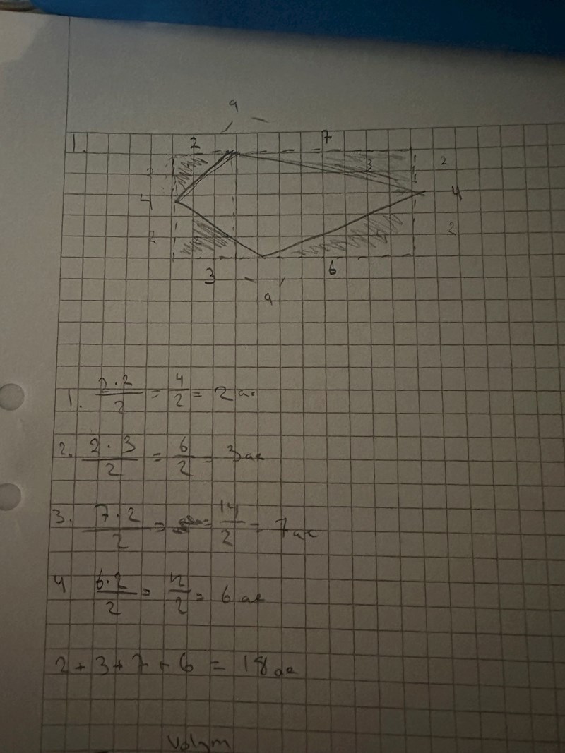 Beräkna nu rektangrlns area och subtrahera 18 från den så får du svaret.