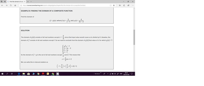 jag har förstått frågan och kan lösa detta men har jag problem med att rita med Geogebra, eftersom x=2/3 är inte i defintionsmängd(domain) av D fog.