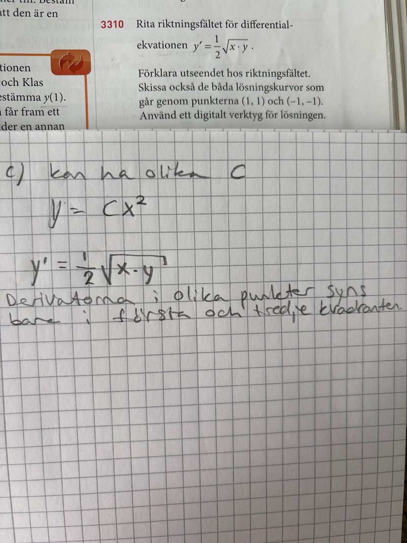 Lösningen i första kvadranten som går igenom punkten A får då anges m.h.a. två kommandon (det ena ritar kurvan till höger om A och det andra ritar kurvan till vänster om A):