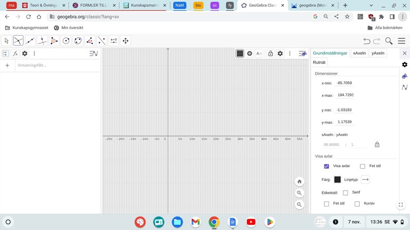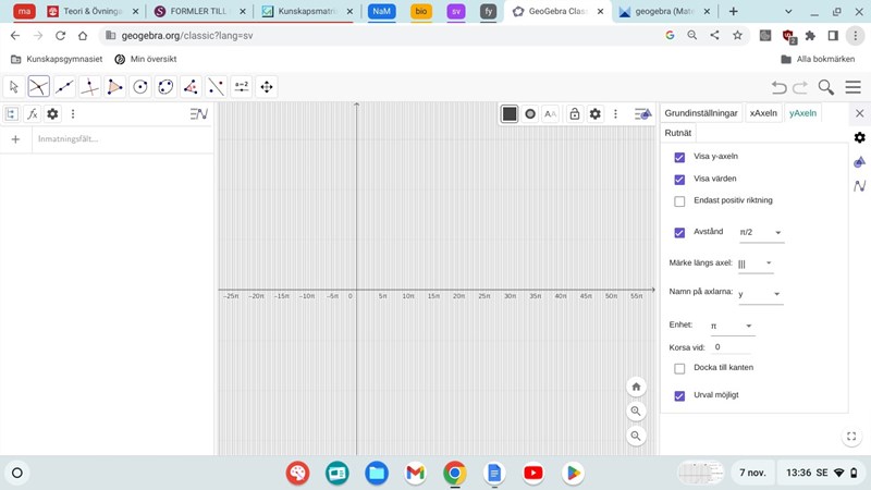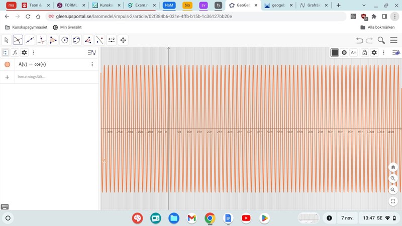 Jag försöker lägga in denna funktion i geogebra, jag har ändrat grundinställningar oså till radianer men förstår inte varför jag inte får fram nån funktion