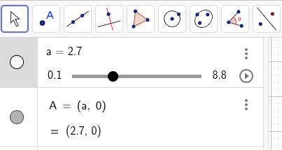Du skriver bara A=(a,0), sedan kan du justera värden för glidaren.