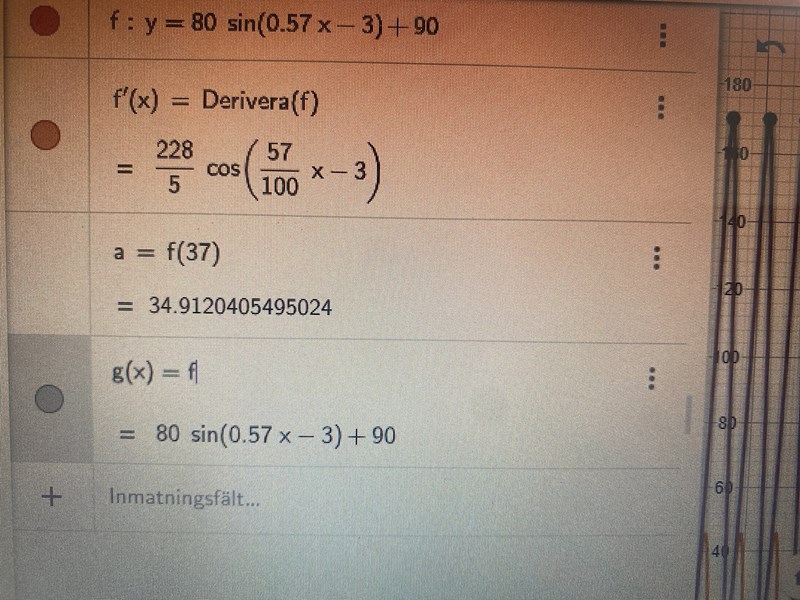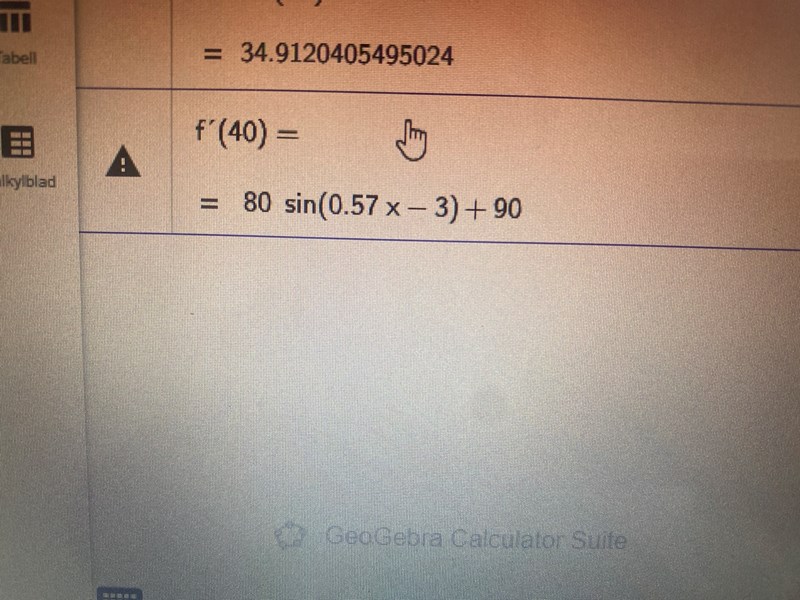 När jag deriverar funktionen f och försöker hitta ett värde för f’(40) får jag en ny funktion? Hur ska man göra