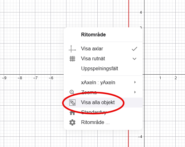 Högerklick i grafen och Visa alla objekt tycker jag fungerar fint.