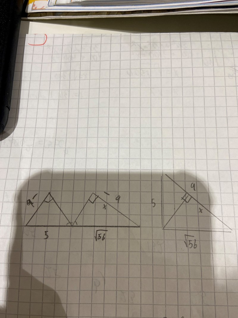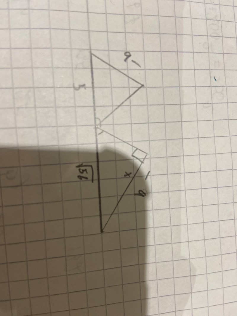 I den näst största triangeln har du lång katet som är x cm och hypotenusan som du beräknat till cm.