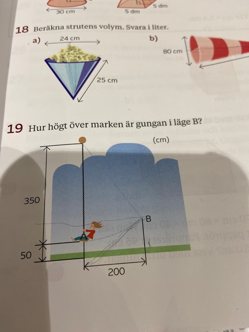 Du har att hela repets längd är 350 cm och att det sedan är 50 cm ner till marken (från gungans lägsta punkt).