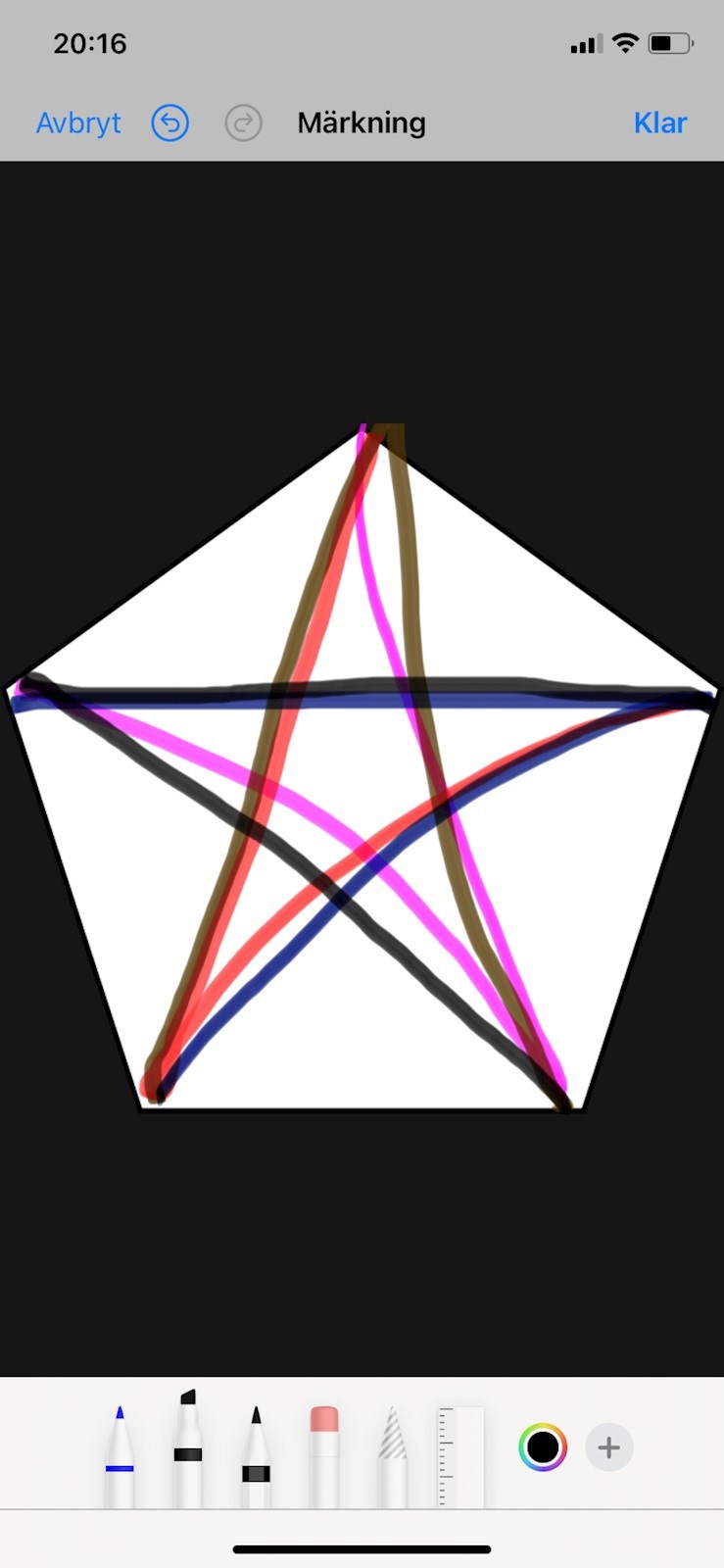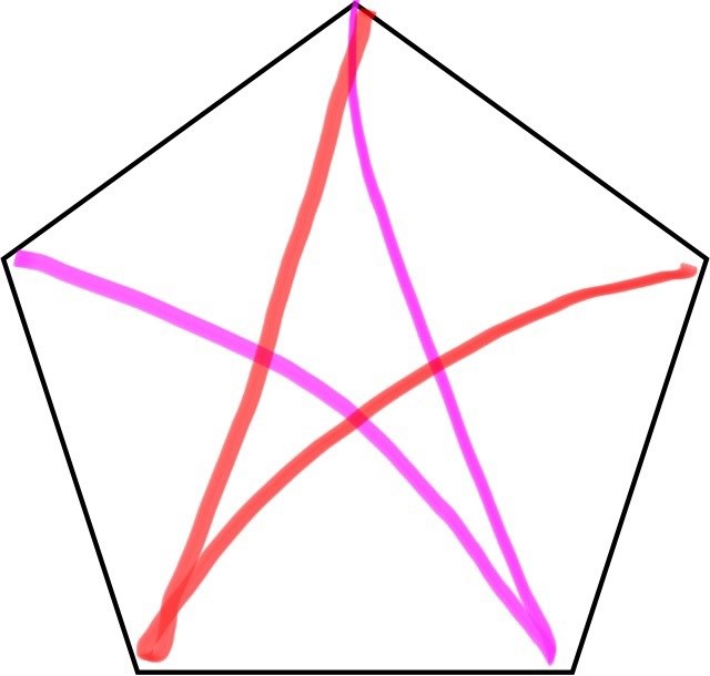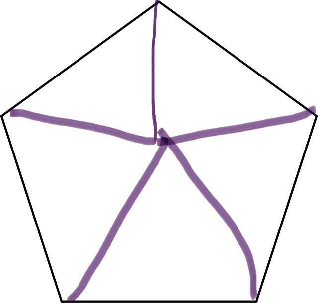 Nej en diagonal är en linje som går från ett hörn till ett annat och som ligger inuti femhörningen.