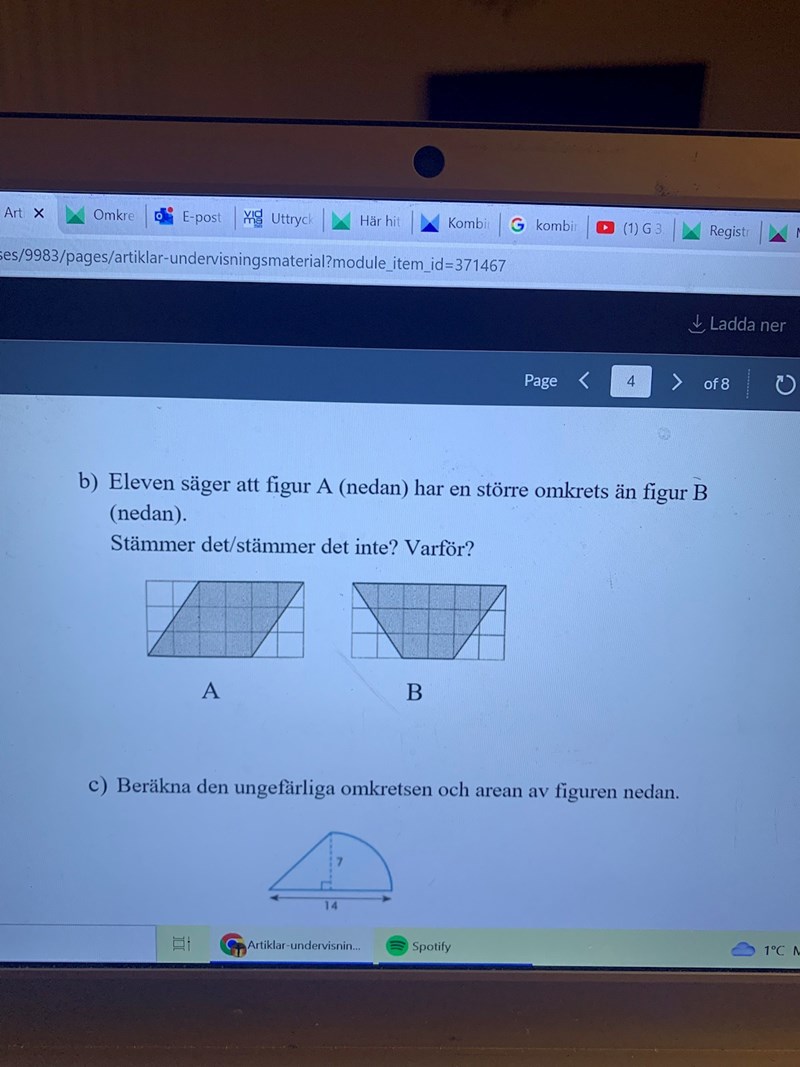 Behöver hjälp med denna är inte säker tänker att B inte stämmer då de har samma omkrets? Och C kan jag inte räkna ut