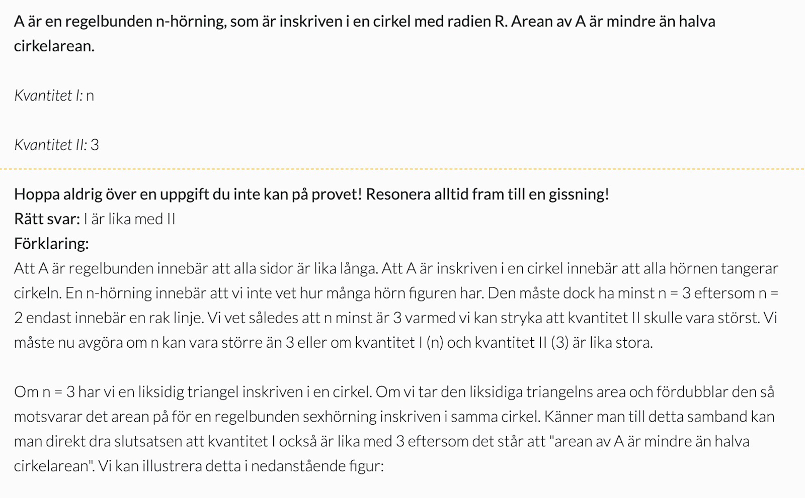 hur räknar jag ut arean av en trehörning inritad i en cirkel med radien R?