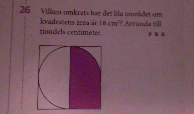 Men alltså jag ska försöka komma fram till det lila områdets omkrets inte area