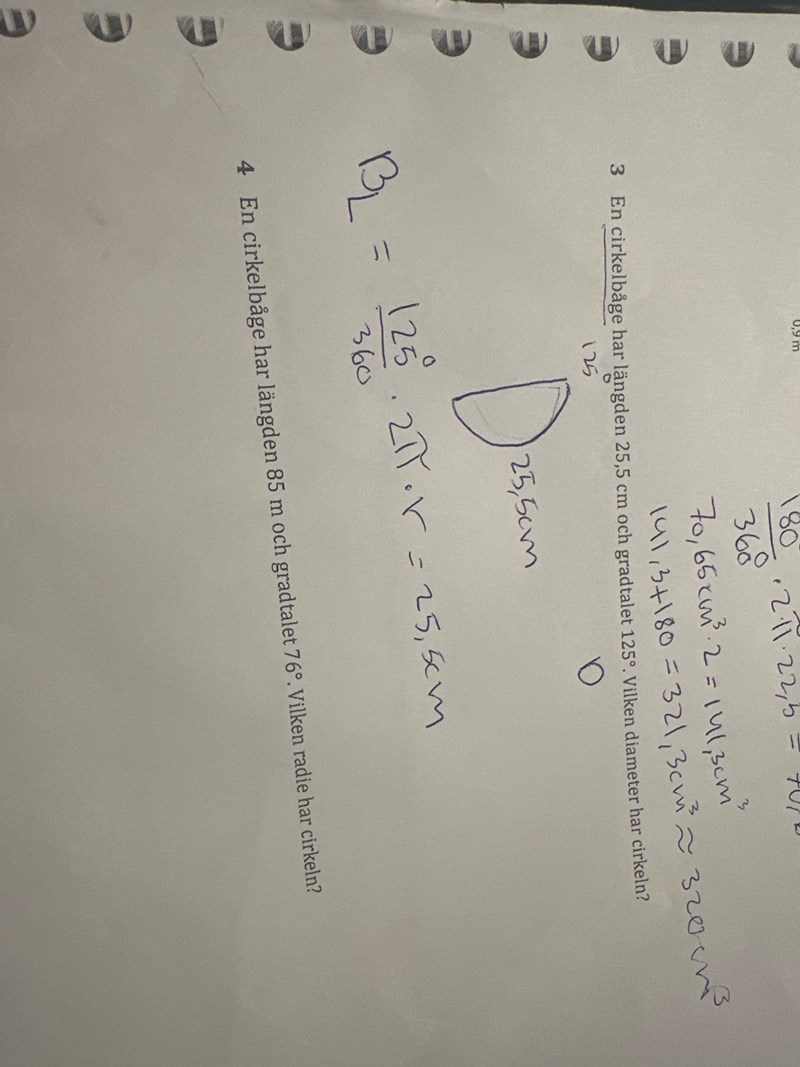 Det ser ut som en bra ekvation för att räkna ut radien, som är det enda okända. Sedan är det ju inte den de frågar efter, men har du radien är du nästan i mål.