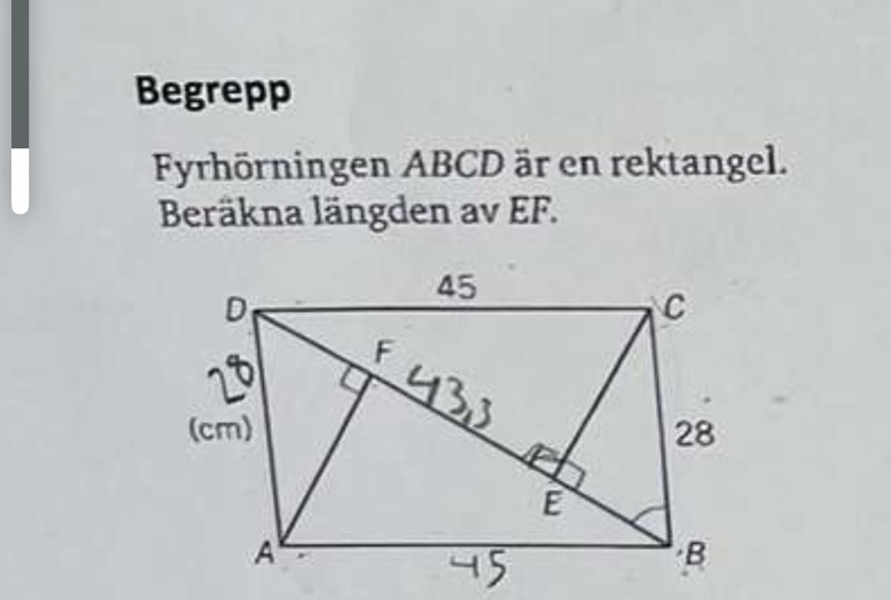 När du har BD, EB (och därigenom DF), så är det bara lite subtraktion för att få ut EF.