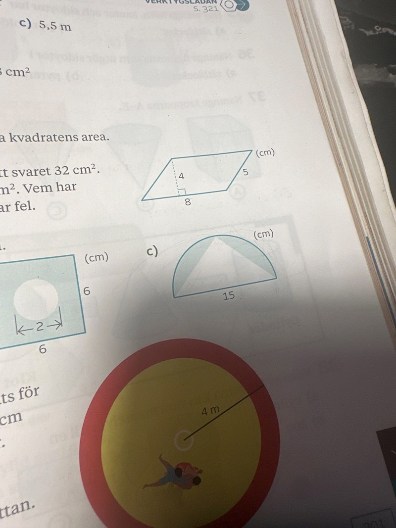 C) jag räknar ut halvcirkelns area men hur räknar ja trianglen