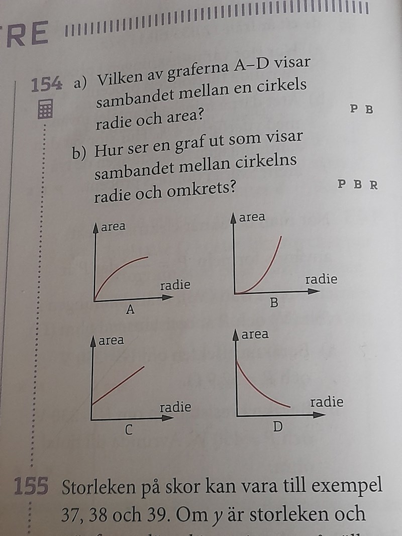 Jag behöver hjälp behöver med fråga 154. Jag vet inte vad svaret är eller hur man ska tänka. Men jag tror att det är antingen A eller B eftersom de fäbörjar från origo. Mer än så vet jag inte