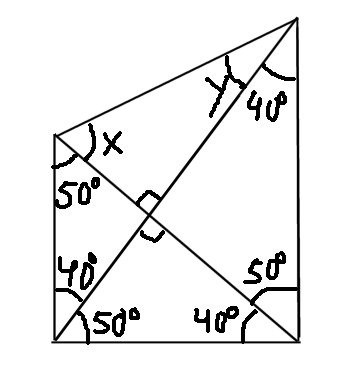 Här är ett förenklat exempel. Figuren är entydigt bestämd, alla vinklar utom x och y är givna, och ändå kan vi inte bestämma dem genom enkel vinkelräkning, bara med trigonometri.