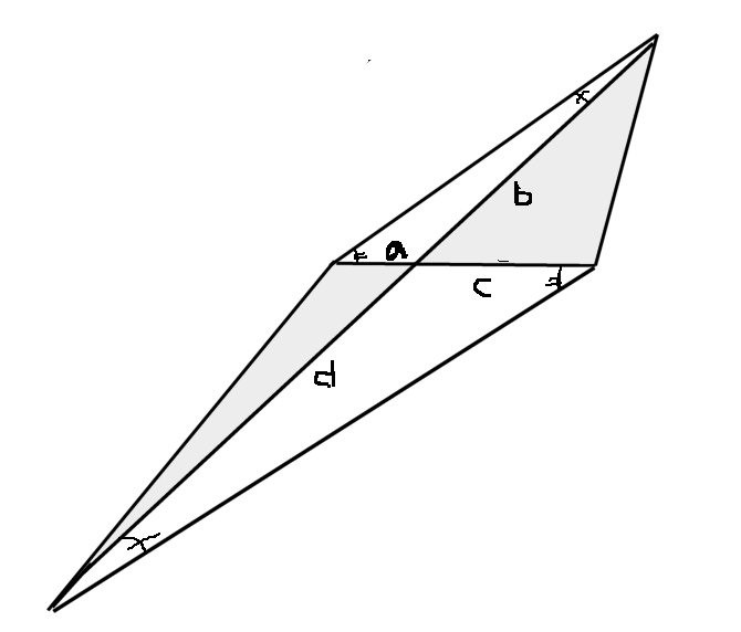Trianglarna är ju likformiga (och kongruenta) eftersom b=d och a=c, men det är inte visat.