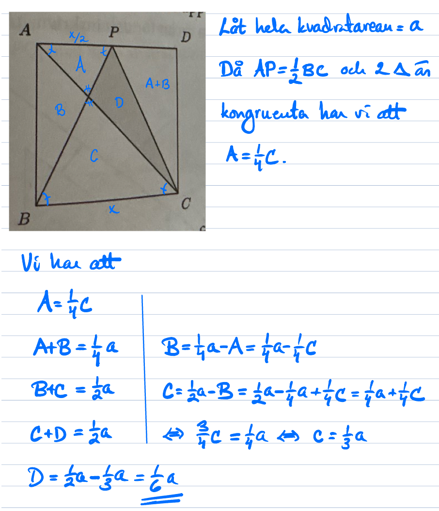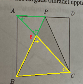 OM jag kallar skärningspunkten för E, så får vi två likformiga trianglar: APE och BCE