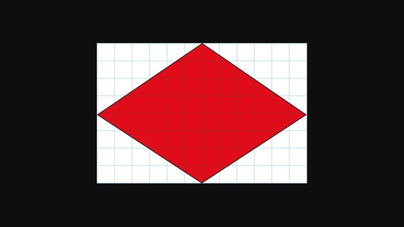 I varje liten rektangel utgör rombens area hälften av rektangeln. Det innebär att i de fyra lika stora smårektanglarna är rombens area hälften så stor, och därmed är rombens area hälften av den stora, vita rektangelns. Det ger arean , precis som tidigare. :)