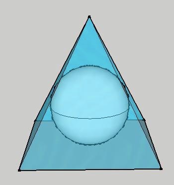 Det bästa man kan åstadkomma är ju att klotet tangerar pyramidens alla fem sidor enligt följande:
