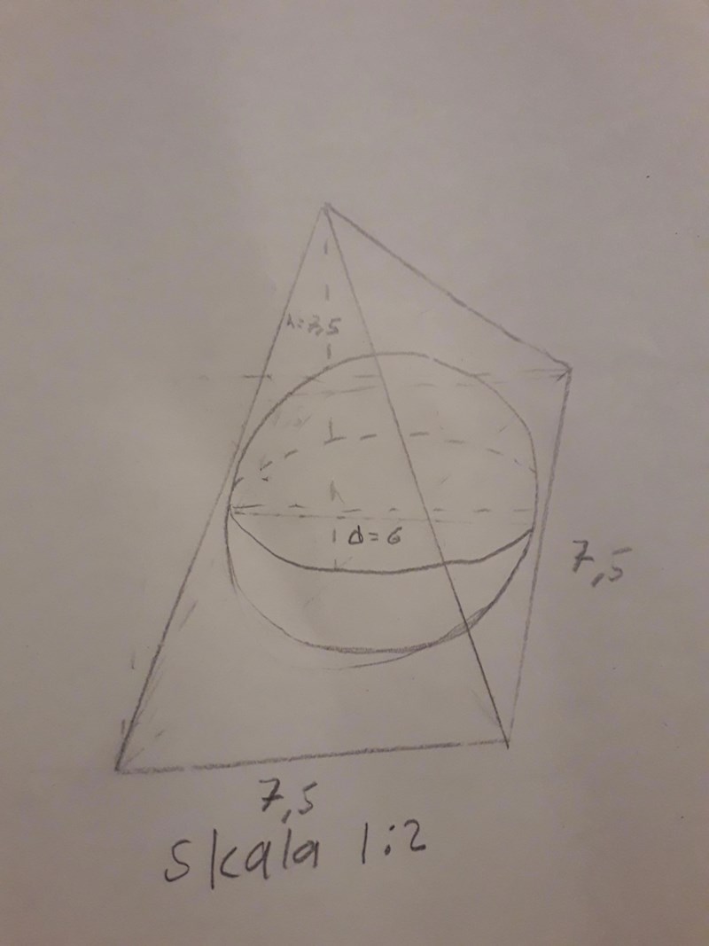 Har du koll på att inte klotet sticker ut utanför pyramiden? Har du ritat?
