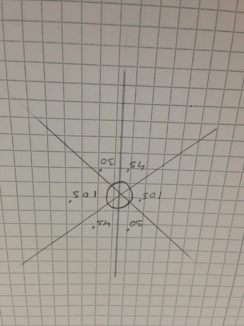 Hej! Jag undrar hur jag ska tänka kring denna uppgift "Tre räta linjer skär varandra i en punkt. Två närliggande av de uppkomna vinklarna är 30 och 45 grader. Hur stora är de övriga?
