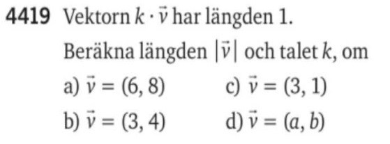 Vi kommer dit. Du har först vektorn (6,8) och den har längden 10. Om du multiplicerar vektorn med talet k så du får vektorn k(6,8), hur lång är den då?