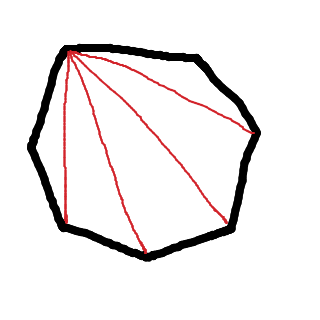 En heptagon kan delas in i sju trianglar, som alla har vinkelsumman . Därmed har en heptagon vinkelsumman . :)