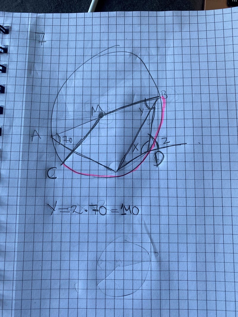 Jag vet att jag först ska bestämma vinkeln ACB genom randvinkelsatsen men jag kopplar inte riktigt, kan jag få hjälp