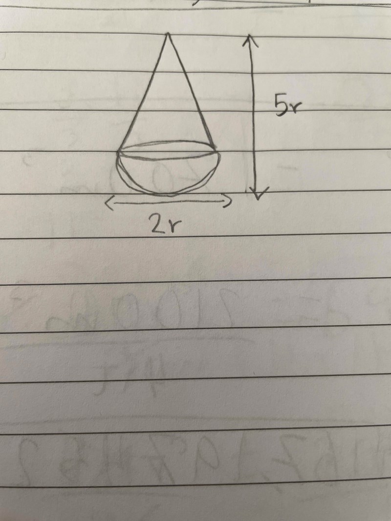 18. En diamant slipas så att den får formen av ett halvklot under en kon enligt nedanstående figur. Ange en formel för diametens vikt om diamant har densiteten 3,51 g/cm3.