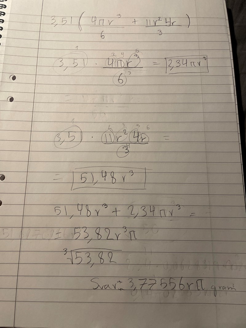 Det ska stå 3,51 jag slarvade och ignorera att de gator klot volym där jag menar hela volymen och sen vikten.