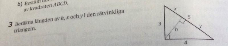 Arean av triangeln kan skrivas som A=3·42  Men även som  A=5·h2