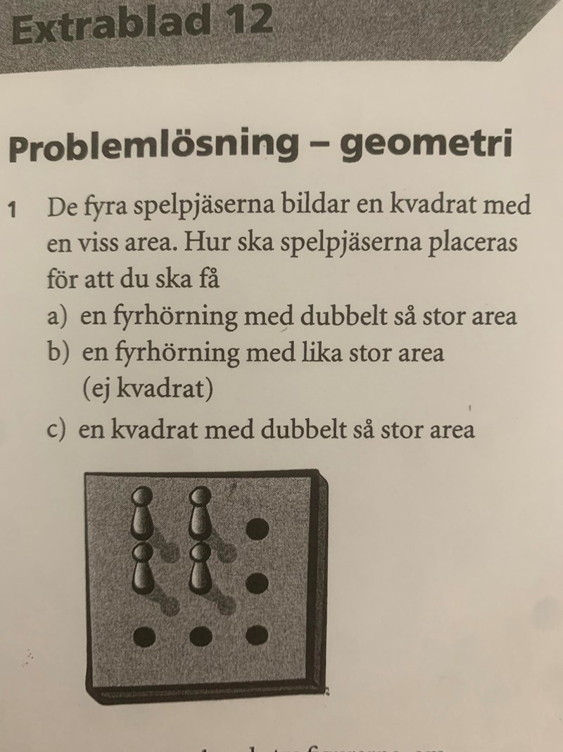 Det är lätt att fastna i att fyrhörningarna i uppgiften skall vara vända likadant.