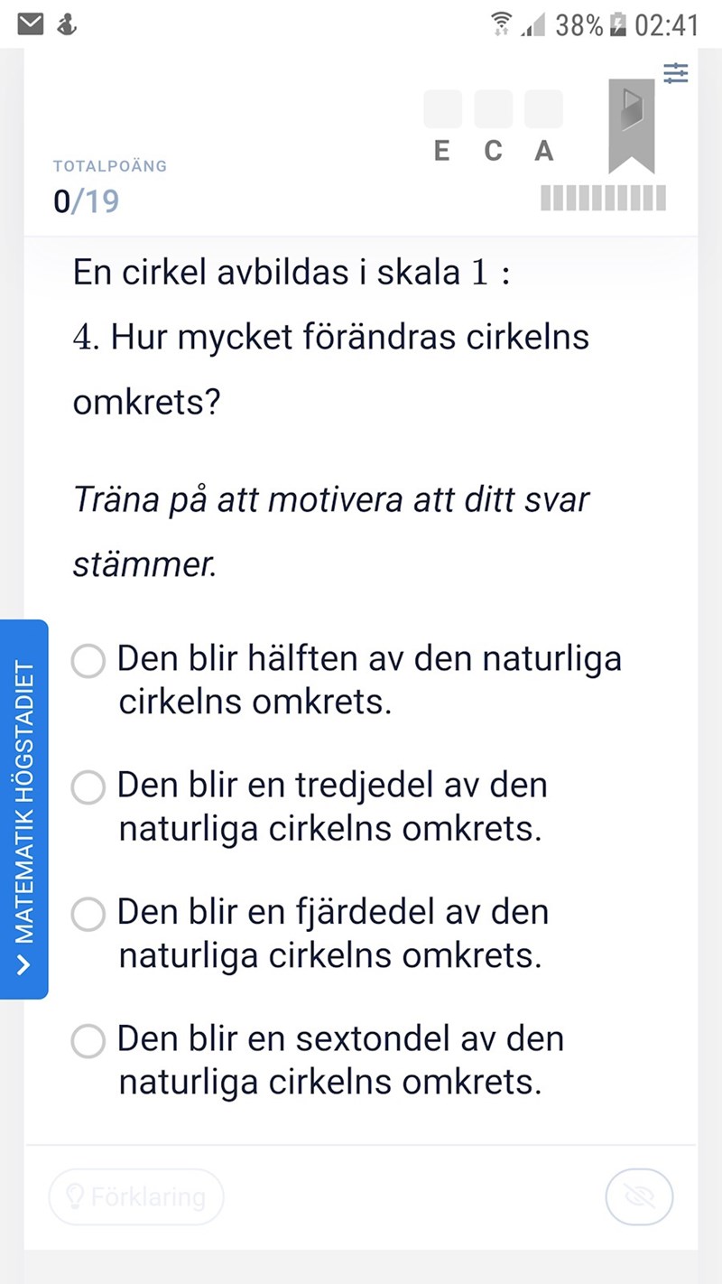 Jag vill väl påstå att omkretsen ändå blir en fjärdedel av den naturliga omkretsen?