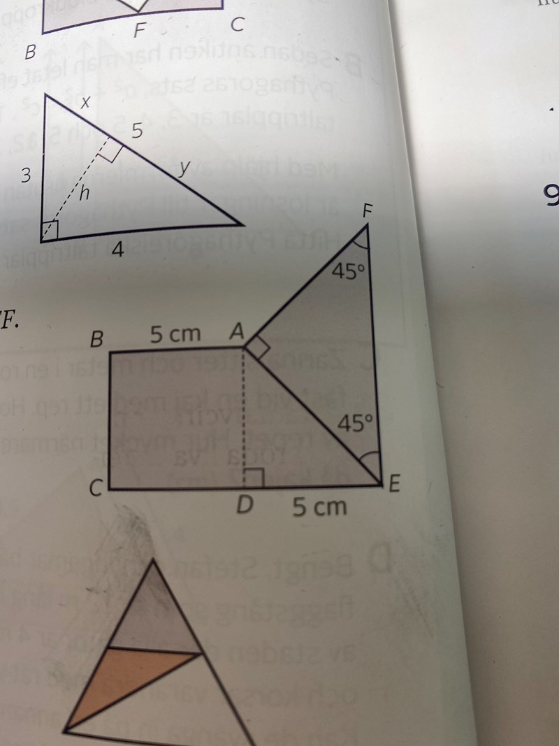 52+52 = 50. Roten ur 50 = 7.07 . Alltså är AE 7.07cm. Eftersom AEF är en likbent triangel är AF också 7.07cm.