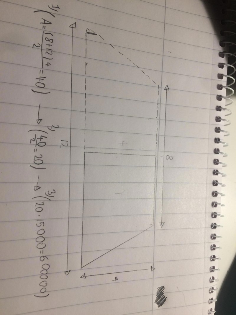 Arean blir (8+12)*15000 * 4*15000 / 2 = (8+12) * 4 / 2 * (15000*15000)