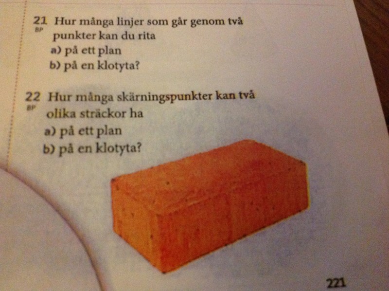 a) formen av en tegelsten => ett plan?