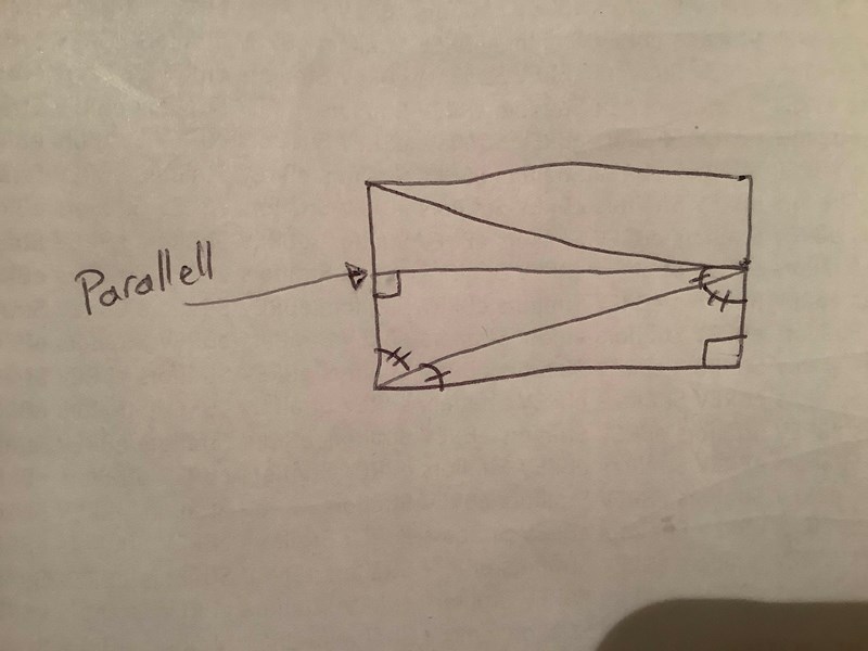 Kul problem! Antag figuren föreställer ett parallellogram (dvs. sidorna är parallella).