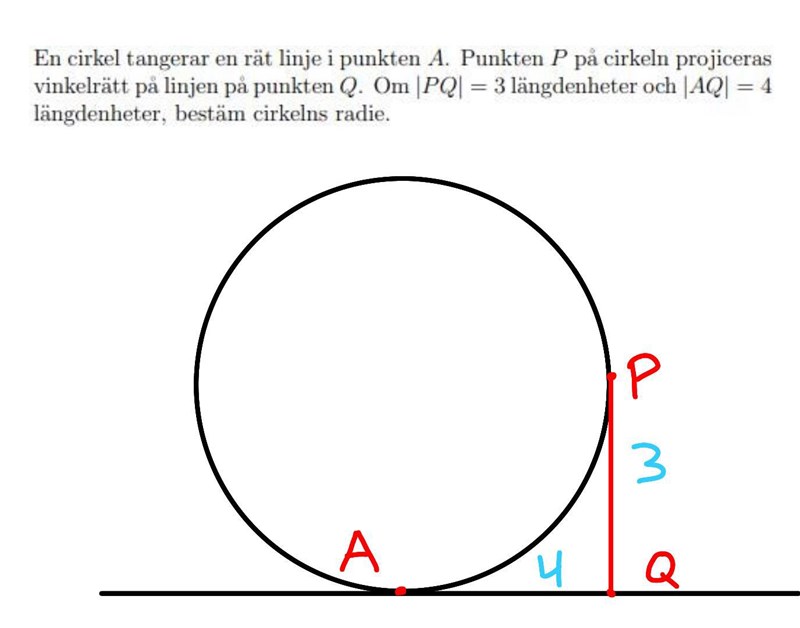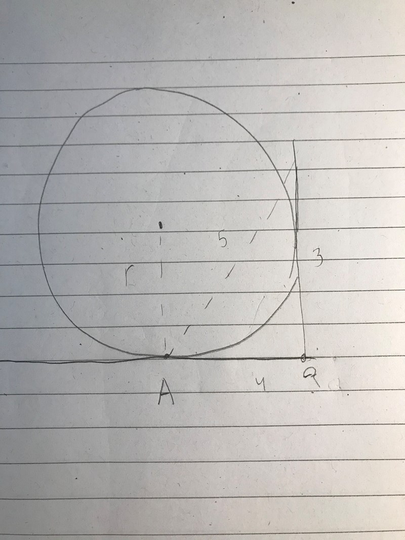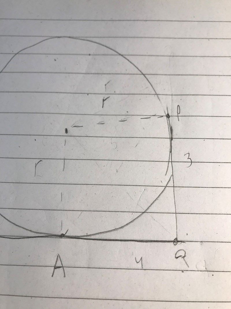 Ja. Dra en linje parallel med AQ från P mot radien som går ut till A. Du får då en rätvinklig triangel med en katet = 4.
