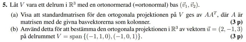Geometri i R3: visa att matrisrepresentation av projektion på plan är lika med AAT